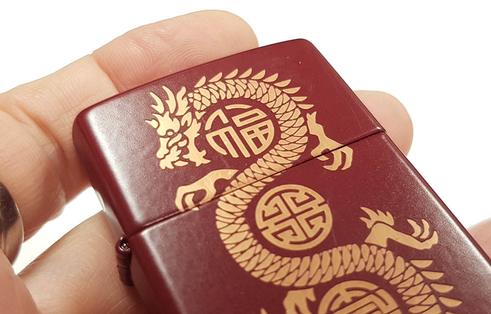 Symbolizing Power, Fortune and Transformation, a Traditional Dragon is Laser-Engraved Onto This Classic Merlot Lighter